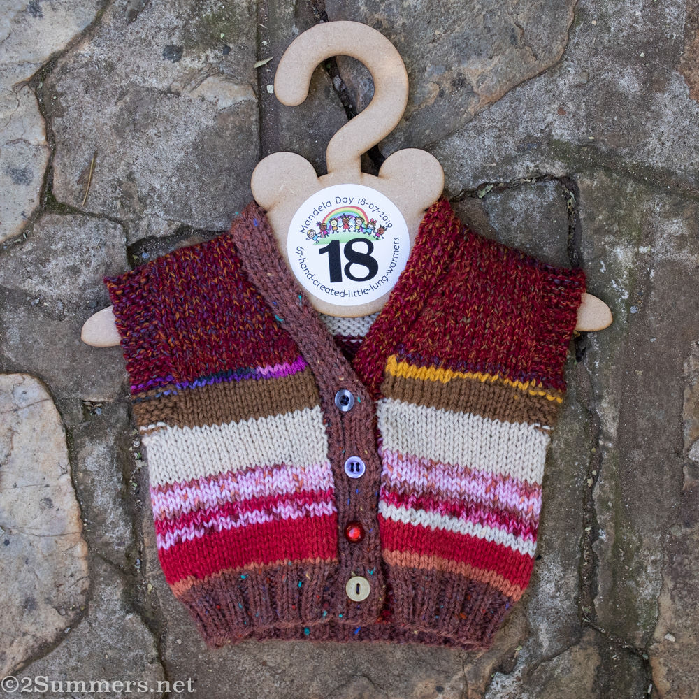 A couple of months ago a woman named Andrea asked if I could photograph a project she was working on. Andrea is a knitter and she was making 67 tiny sweaters – Andrea calls them Little Lung Warmers – to donate to charity in honor of Mandela Day. The number 67 is significant for Mandela Day because Mandela served South Africa for 67 years. (Read more here.)