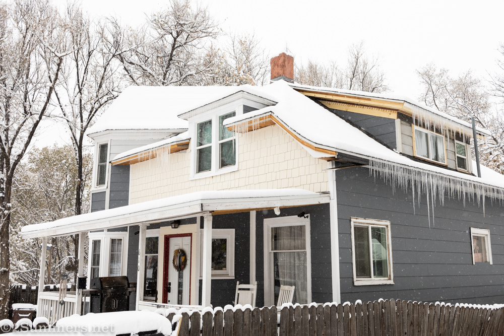 My mom and I took a walk into town. The snow piled up on the colorful little Craftsman-style houses in the most delightful way.