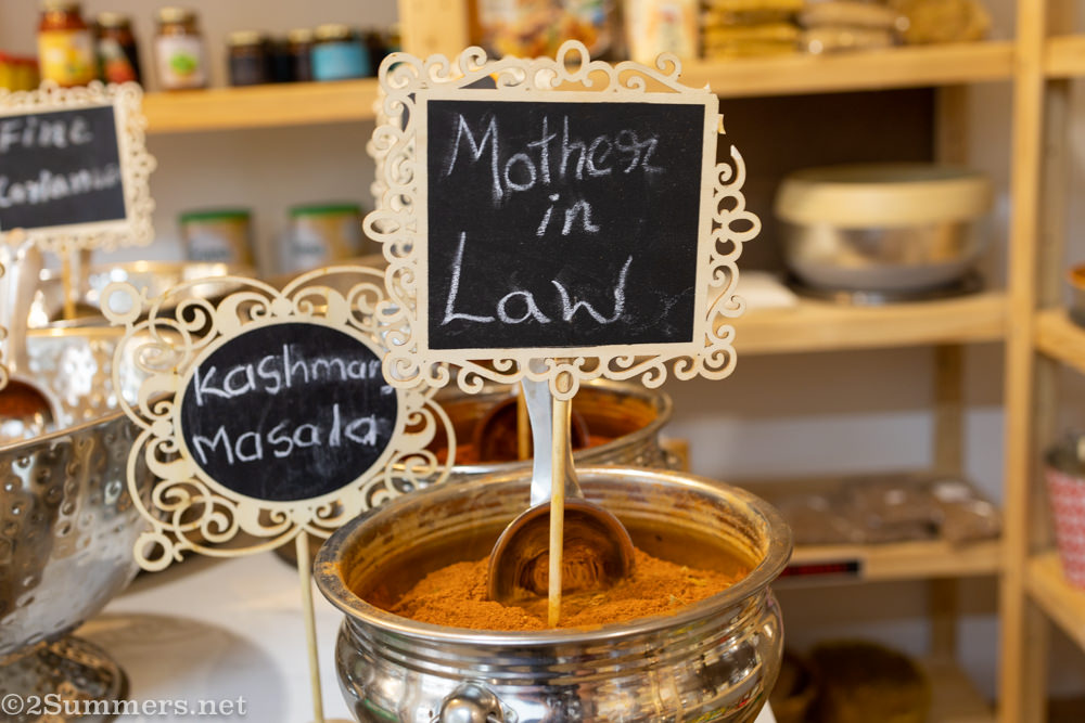 Julie and I had a longish chat with Jameela Mohammed, the owner of Flavour’z of India and a mother herself. Julie bought frozen samoosas and saffron and I bought bright yellow turmeric for a cake I’m planning. It seemed appropriate to feature Jameela in today’s blog.