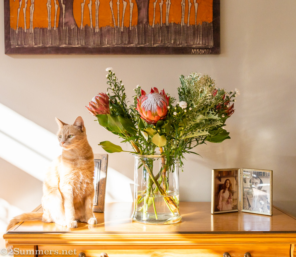 Love your supermodel cat; and the flowers :-) enjoy the weekend break!