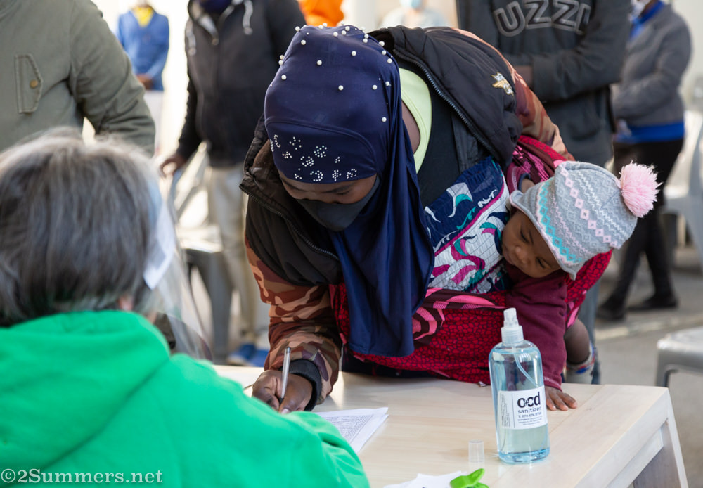 Thanks to this move, the distribution happened much more quickly today than it did last week. Also these volunteers are incredible – what an efficient, courteous, and good-natured group of people. I was (and still am) in awe.