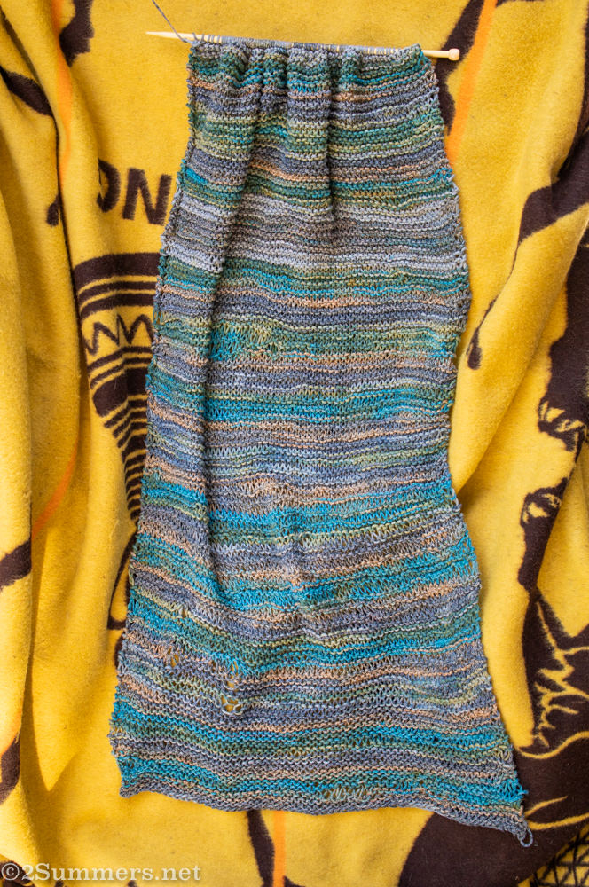 I’m almost through with the second ball of yarn. When I get close to the end, I’ll have a video call with Fiver so she can help me work out how to finish it off.