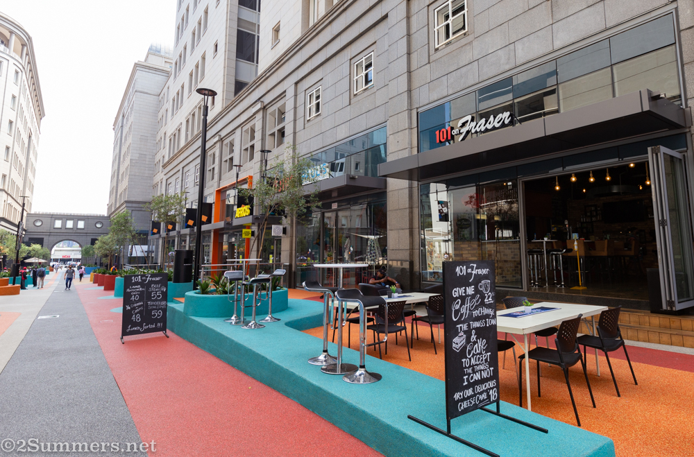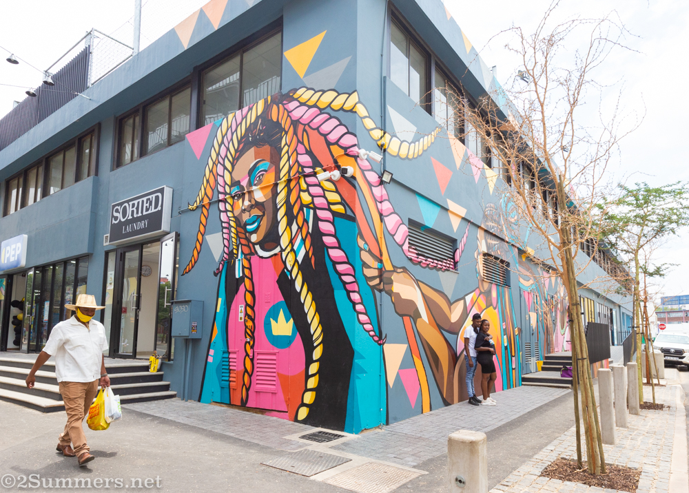 A historic building on Eloff Street.We walked the length of the Kerk Street Market – downtown Joburg’s pedestrianized outdoor shopping street – and I took tons of pictures of the different vendors. This part of town looks fantastic right now.Rea Vaya station at the corner of Kerk and Rissik.I could spend a whole day photographing fruit displays on Kerk Street.Restaurants and shops at FNB Bank City, on a pedestrianized section of Simmonds Street. Bank City is another beautifully renovated part of downtown – I need to devote a future blog post to it.The "Democracy Is Dialogue" sculpture, by Lawrence Lemaoana, in Beyers Naude Square.The Rand Club. I’m always trying to photograph this building head-on and it never looks good because it won’t quite fit into the frame of my wide-angle lens. Thanks to Gerald for suggesting we try photographing it from the side.Mid-day in Gandhi Square.Coffee shop in Little Addis, downtown Joburg’s Ethiopian neighborhood.Busy scene on Rahima Moosa Street, formerly Jeppe Street, in Little Addis.Jewel City is a new residential/retail development – just finished as lockdown was ending – next to Maboneng. I walked through Jewel City briefly a few months ago but hadn’t been back since it officially opened. I can’t believe how great it looks.Banger of a mural by Nard Star. Jewel City has become the best place in town for street art photography.Sassy school girls.James XVI, my favorite Ethiopian in Joburg. I tried to just say hi to James in passing, but he would not let us go without serving us coffee first. It was great to see James again after many months away.We finished our walk in Maboneng. Here’s Gerald enjoying a mineral water at Bertrand Café.
