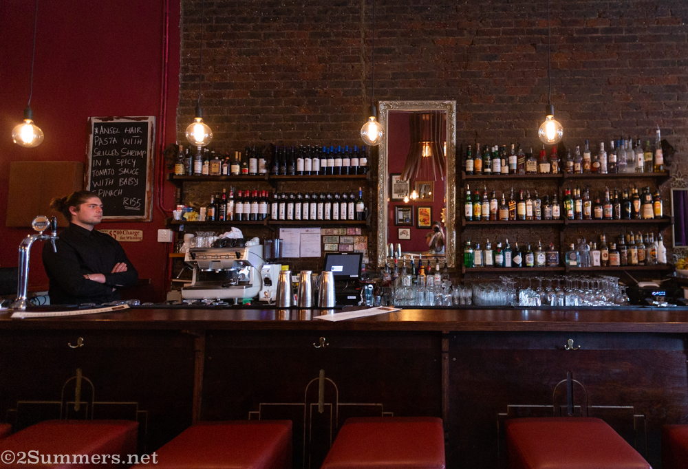 The garden section is down a narrow passage at the back of the restaurant, and when you walk through Blind Tiger’s front entrance it is not totally obvious what lies at the end of that passage. And the front part of the restaurant is really lovely and cozy; I didn’t have a good reason to look beyond it before the pandemic happened.