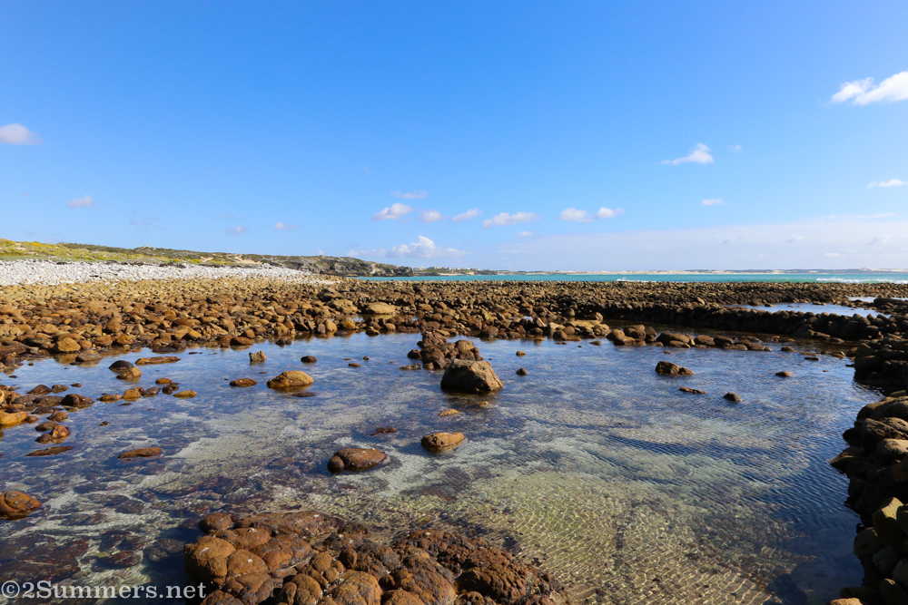 After the cave we continued south into the nature reserve toward Roman Beach, which is insanely beautiful. At the end of the beach is a 150-year-old beacon erected to help ships navigate around the point, as well as a series of ancient, stonewalled fish traps that indigenous people have used for centuries to catch fish with the tides.