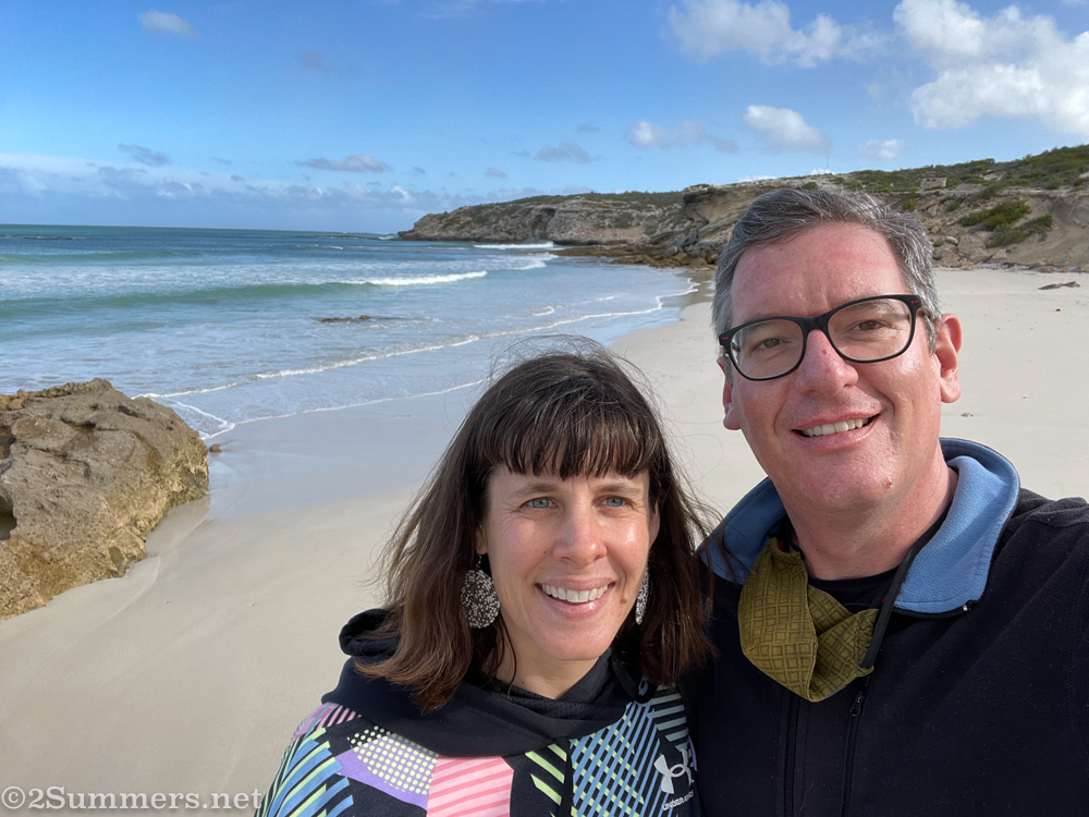 On our second morning we walked north from town (across more beautiful, deserted beaches) to the Arniston shipwreck monument about four kilometers away. The monument commemorates the sinking of the Arniston Transport, the town’s namesake, in September 1816. The original monument was erected soon after the wreck by Lord and Lady Molesworth, who lost four sons in the wreck, but that monument was eventually moved to the Shipwreck Museum in nearby Bredasdorp. The current monument, modeled after the original, went up in 2010.