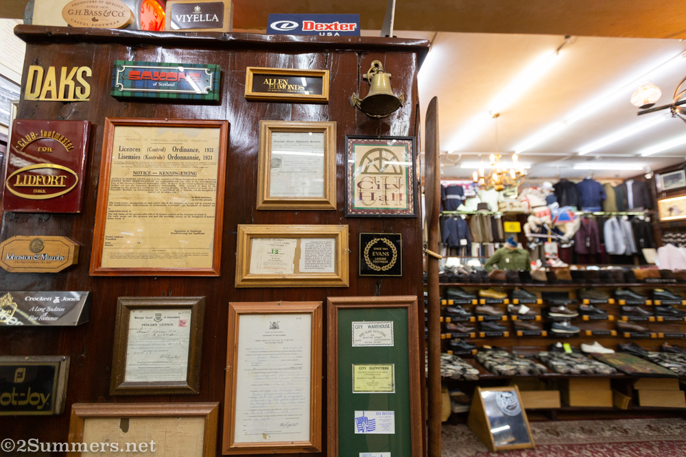 We had a lovely chat with Abdullah. He showed us a big scrapbook about the history of his family and business and told us about his grandfather, Ismail, who traveled alone from India to Africa (first to Mozambique and then to South Africa) as an orphaned teenager in 1915. Ismail began his retail career as a street peddler. City Hall/City Outfitters opened in 1931 and flourished under the management of Abdullah’s father, Mohammed, who was tragically killed in 2009. Abdullah, who originally trained as an optometrist and ran his own optometry shop across the street from City Hall, took over the clothing business after his father died.