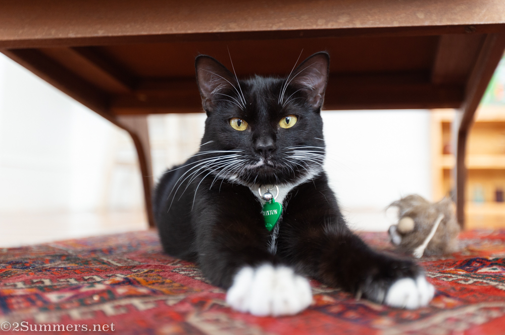 I’ve been dragging my feet on publishing this post, probably because this is the first new cat to come into my life since the departure of Smokey, the Melville Cat, more than two years ago. The Melville Cat always wrote his own posts, but Trixie never took to blogging and I doubt Brixie will, either. (Neither Trixie nor Brixie have the same regal sense of entitlement that the Melville Cat had.) Nonetheless, I think it’s important for Brixie to be formally introduced to the 2Summers world.