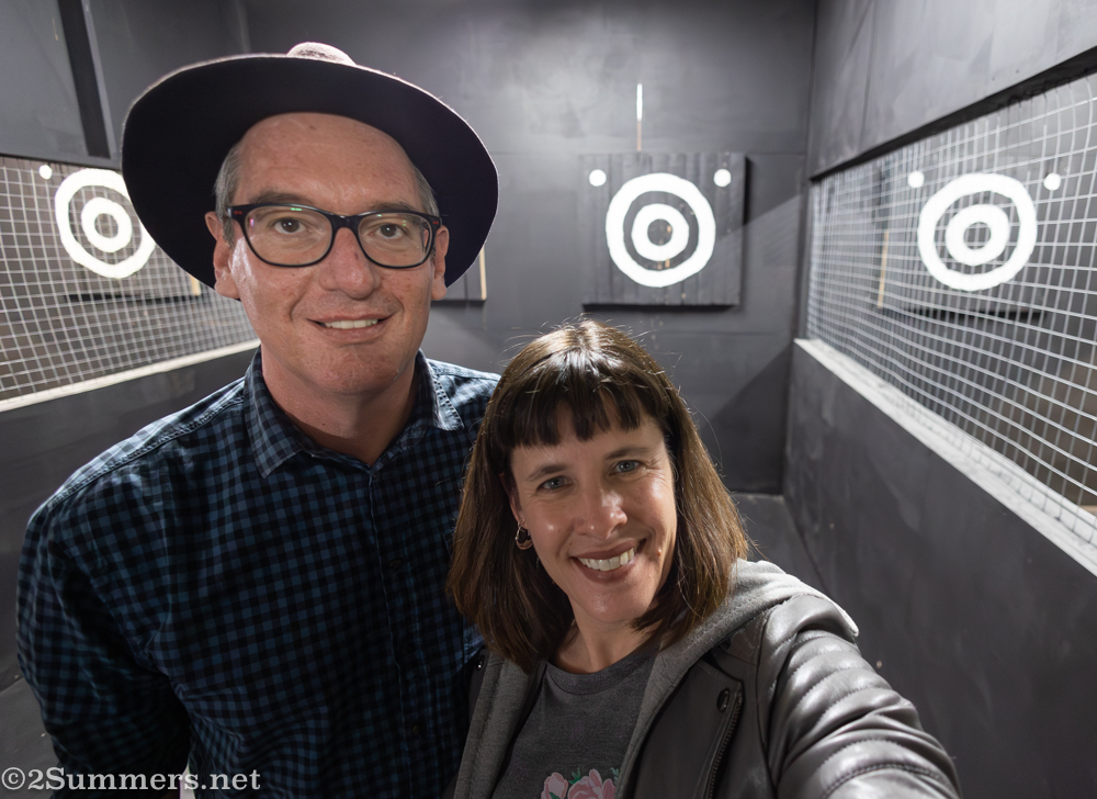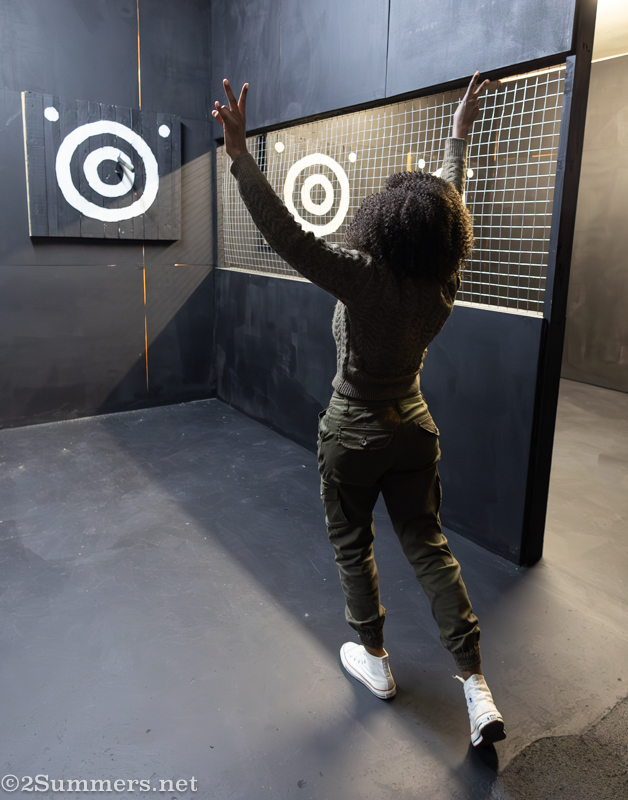 There is axe throwing out here–definitely a satisfying activity. Usually at local farms in the fall, without the walls…and they let kids do it! Axe-static seems safer.