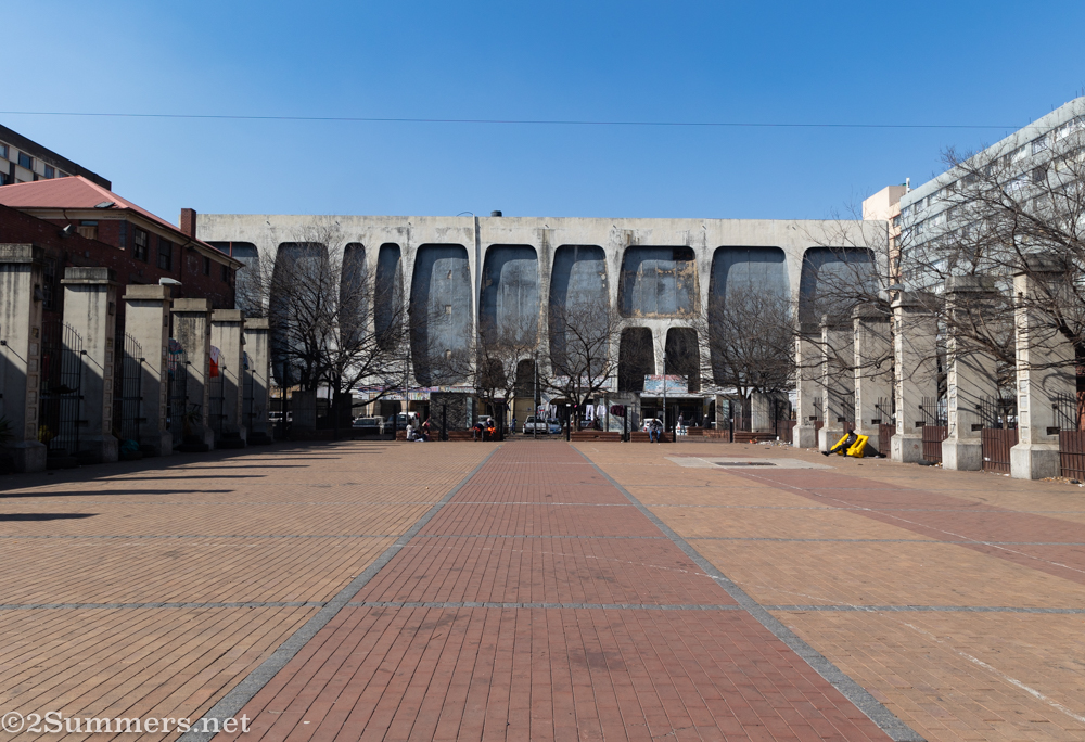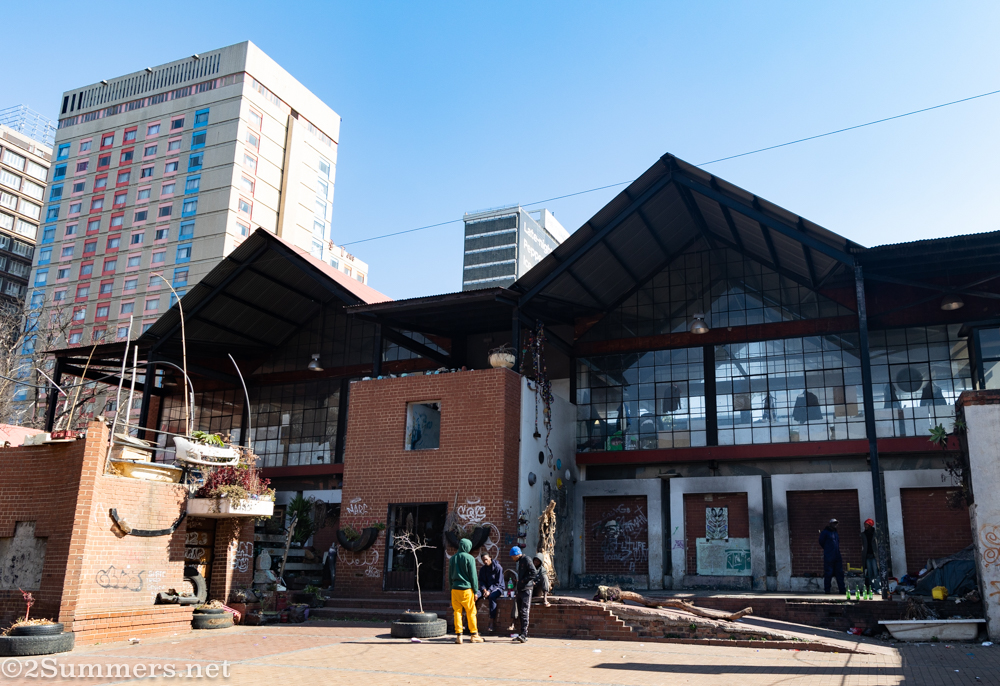 The military left the Hall in the 1990s, after the advent of democracy, and the building quickly fell into disrepair. It served as an impromptu homeless shelter for hundreds of people and was severely damaged by fire multiple times. In the early 2000s, the building underwent a major renovation by the Johannesburg Development Agency and turned into a vibrant public space. But eventually, like so many other Joburg spaces, the Drill Hall became neglected again. (For more background on the Drill Hall’s plight in recent years, read this 2021 Daily Maverick article.)