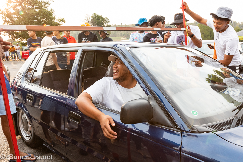 We had hoped to see some spinning, but Percy suspected that wouldn’t start until much later in the evening. We did, however, catch the delightful “Low Limbo” competition, which is pretty much exactly the way it sounds: the Limbo for cars. A makeshift Limbo pole is erected in the parking lot and cars try to squeeze under the pole at its lowest possible height. The judges carry tape measures to confirm the winner.
