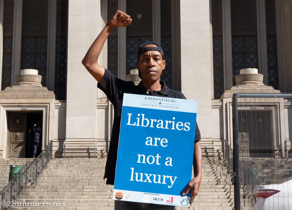 Incidentally, the City of Joburg put out a media release yesterday (two days after the protest) announcing that budget has been allocated for the library repairs, and this allocation “is expected to pave the way for the partial reopening of the [Joburg City Library] in the next financial year.” It’s great that the City responded, but this language seems intentionally vague and also not enough: The point is to get the library re-opened NOW.