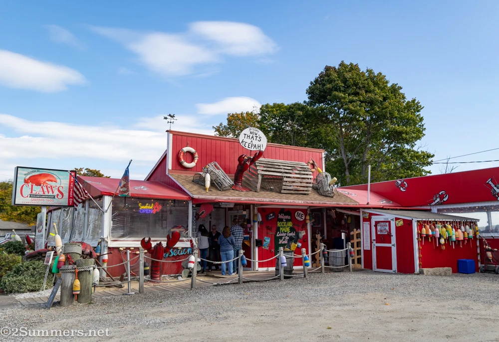 My first lobster shack experience was a lobster roll lunch at Claws in Rockland, Maine, where I stopped during my drive from Portland to Bar Harbor.